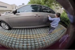 车辆停在车位上,遭旁车女子带着孩子连续三次开门杀